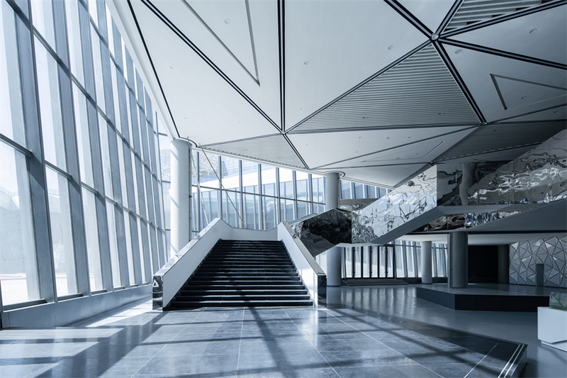 在設(shè)計過程中,設(shè)計團隊深度融合“生態(tài)”與“創(chuàng)新”理念,將全生命周期綠色低碳理念貫穿始終,在場地規(guī)劃、空間營造、技術(shù)整合與材料應用等方面實現(xiàn)了系統(tǒng)性創(chuàng)新突破。建筑布局緊密貼合榆中當?shù)貧夂蚺c地形特征,充分運用被動式設(shè)計策略,最大程度利用自然采光與通風,有效降低建筑運行能耗。技術(shù)應用上,項目集成高效地源熱泵系統(tǒng)、建筑光伏一體化(BIPV)技術(shù)、智能能源管理與雨水回收利用系統(tǒng)等,構(gòu)建起高效循環(huán)的資源利用體系。材料選擇方面,大量采用本地化、可再生及低碳建材,融入具有甘肅地域文化特色的生態(tài)景觀設(shè)計,使科創(chuàng)中心成為與周邊自然環(huán)境和諧共生、彰顯隴原風貌的綠色建筑典范。